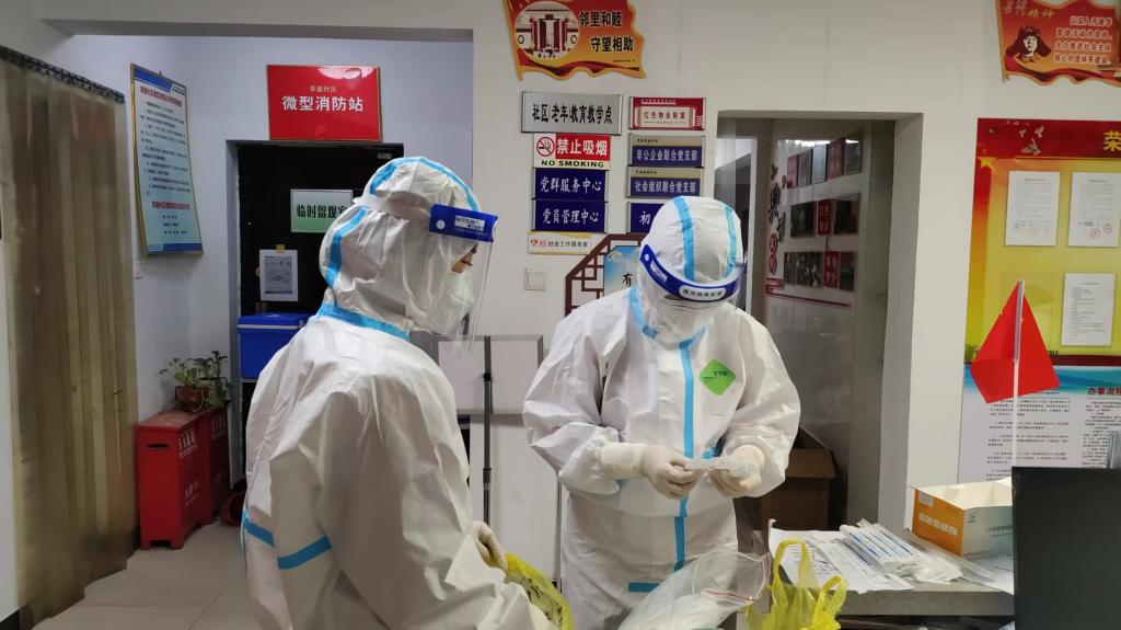 因疫情防控需要尚未返校的员工党员也积极响应公司党委号召,在家乡争当志愿者,投身于疫情防控工作。目前公司已有10名员工党员参加了社区的疫情防控服务工作,积极协助社区工作人员进行入户排查、流调登记、站岗服务,引导居民有序进行核酸检测,用一抹抹鲜亮的“志愿红”筑起了疫情防控的“铜墙铁壁”。