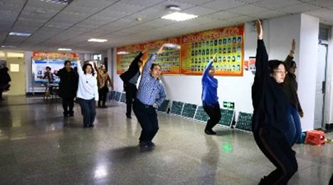 公司工会委员和学院领导班子成员以身作则,每天带领在校的教职工做广播体操。一方面为即将到来的广播操比赛积极备战,另一方面号召学院教职工在繁重的教学和工作任务之余锻炼自己的身体,强健体魄。