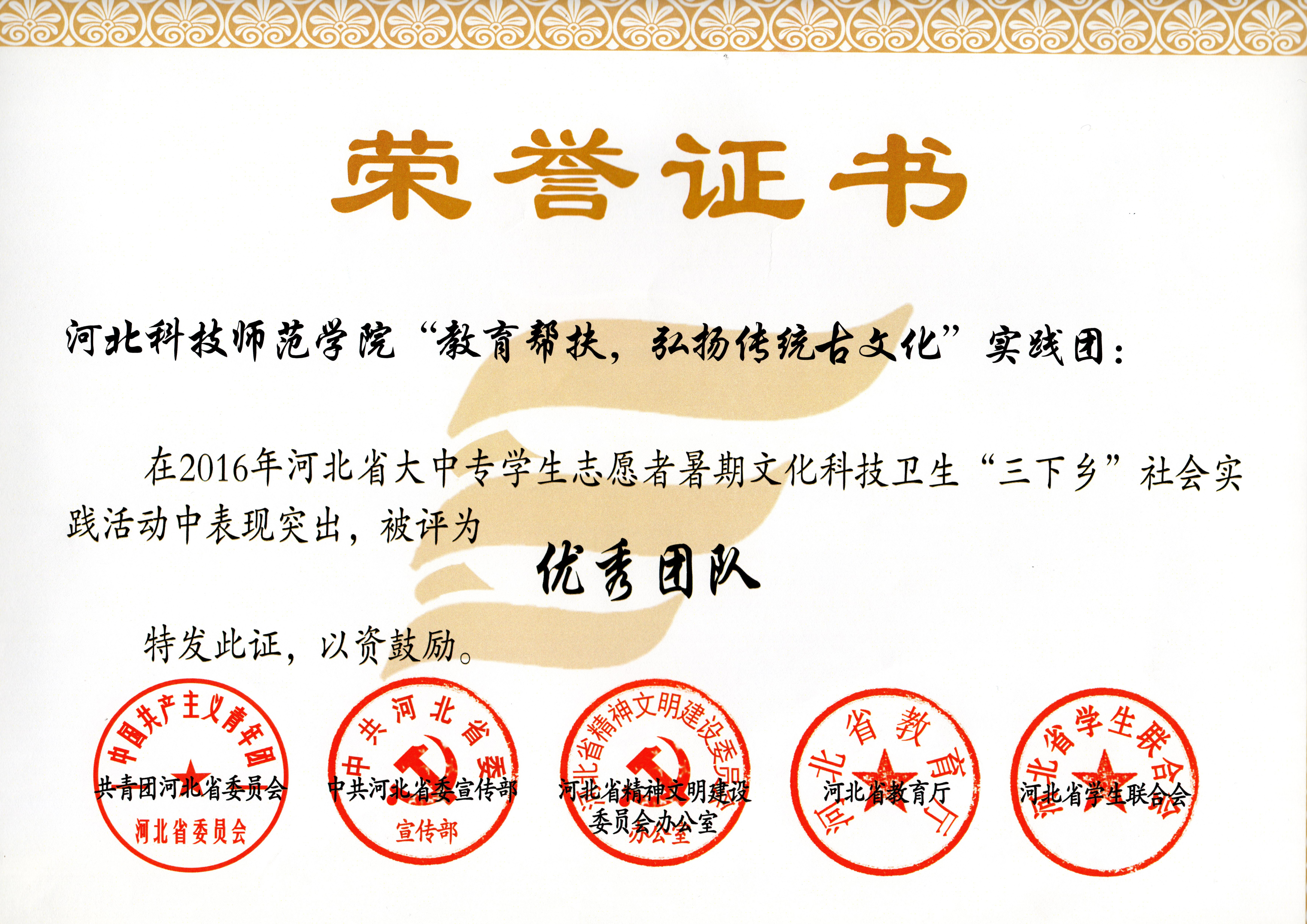 2016年,暑期社会实践小分队荣获“省级优秀团队”称号。