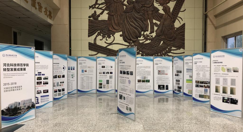 经过前期策划、材料征集、修改统稿、艺术设计及展板制作,由校转型发展办公室牵头组织的“对接区域发展强服务 创新培养模式育英才” 2015-2018学校转型发展成果展,于5月28日在秦皇岛校区逸夫楼一楼大厅开展。