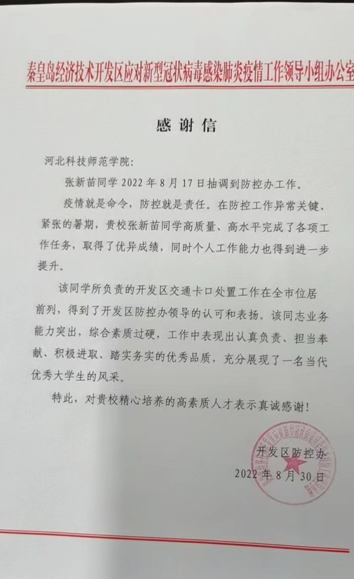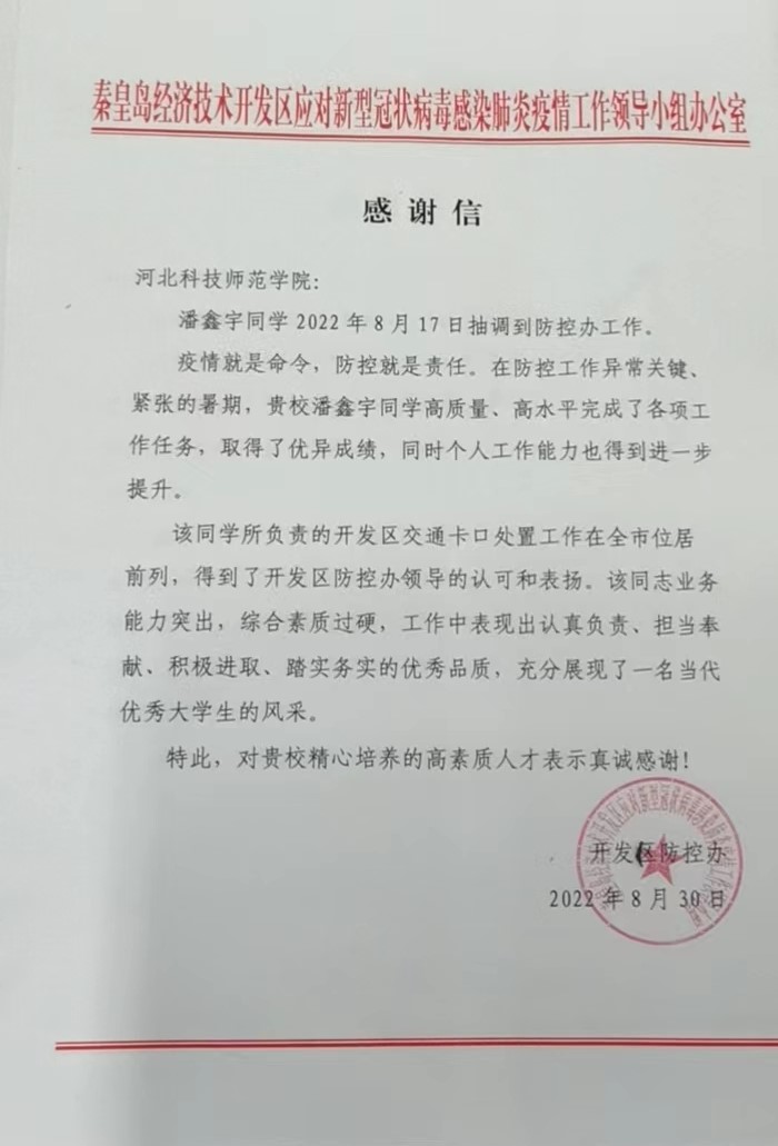 2022年9月16日,秦皇岛市疫情防控办领导刘汶隆和于俊国莅临公司,对暑期疫情志愿者工作表示感谢,并为志愿者颁发表扬信。文法公司党委书记郝东接待了防控办来宾并进行洽谈。防控办表示,面对严峻的疫情防控形势,9428cn太阳集团古天乐积极响应国家疫情防控号召,在暑期组织员工参与本市疫情防控工作。疫情就是命令,防控就是责任,在防控工作异常关键、紧张的暑期,潘鑫宇和张新苗两位志愿者所负责的开发区交通卡口处置工作在全市位居前列,得到了开发区防控办领导的认可和表扬。高质量、高水平完成了各项工作任务,他们工作中表现出认真负责、担当奉献、积极进取、踏实务实的优秀品质,充分展现了当代优秀老员工的风采。