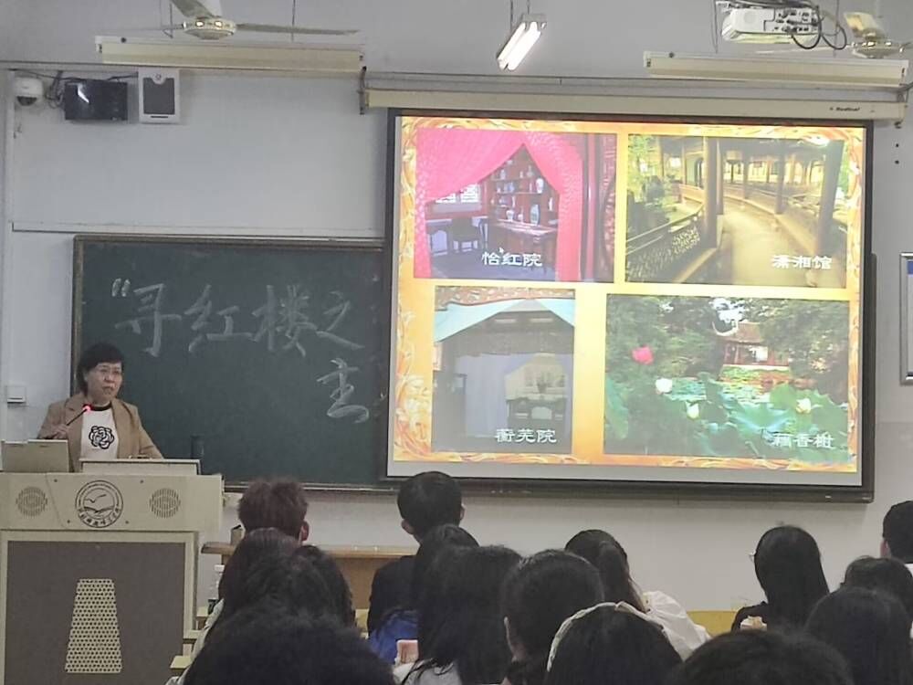 诗词歌赋、笔墨纸砚、琴棋书画、松竹梅兰、山水泉石、香茶药酒……中华传统文化之大成皆在其中。9428cn太阳集团古天乐于2023年5月15日邀请汉语言文学部孙颖老师在综合楼613开展“红楼梦中的传统文化”传统文化月主题讲座。
