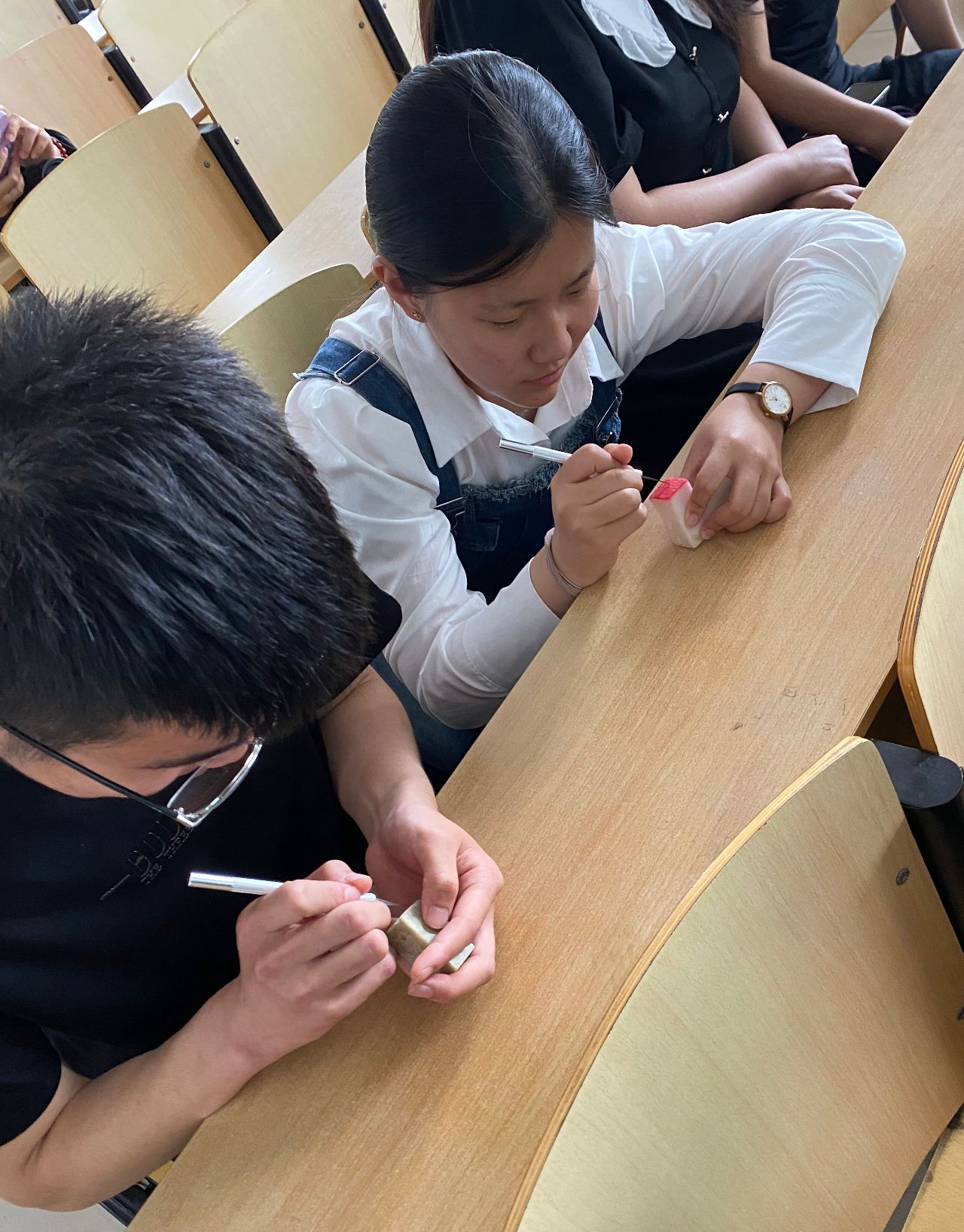 篆刻是我国传统刻制印章的艺术,小小一方印章,却有万物之情状。为传承中国传统文化,培养老员工对篆刻艺术的热爱,增强老员工的文化自信,9428cn太阳集团古天乐特于2023年5月31日举办了“篆传统之美,刻华夏文化”传统文化月篆刻教学活动。本次活动共二十余人参与,同学们积极参加,反响热烈。