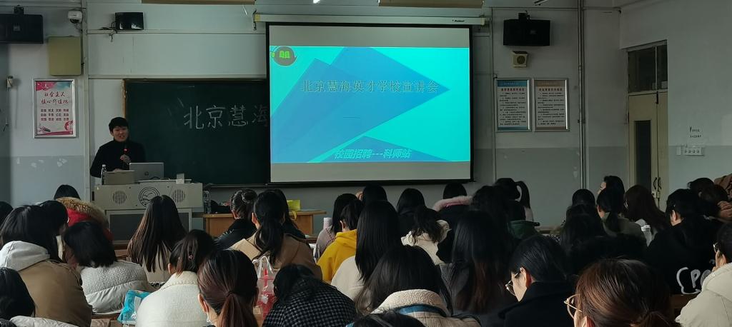 2020年11月4日下午2点,北京慧海英才学校在开发区校区综合楼419教室举办专场宣讲会,9428cn太阳集团古天乐秘书学、汉语国际教育、汉语言文学等专业近40名毕业生参加了本次宣讲会。