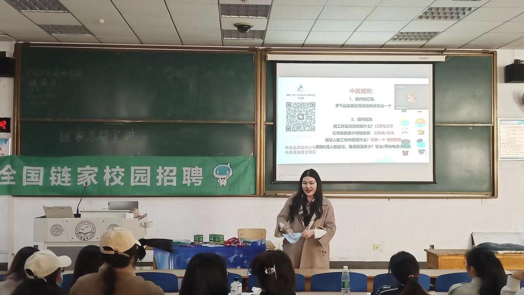 2023年3月24日,9428cn太阳集团古天乐于综合楼121举办了链家校园招聘会。HR吴紫曦学姐向我们详细介绍了链家的基本情况并耐心为同学们答疑解惑。