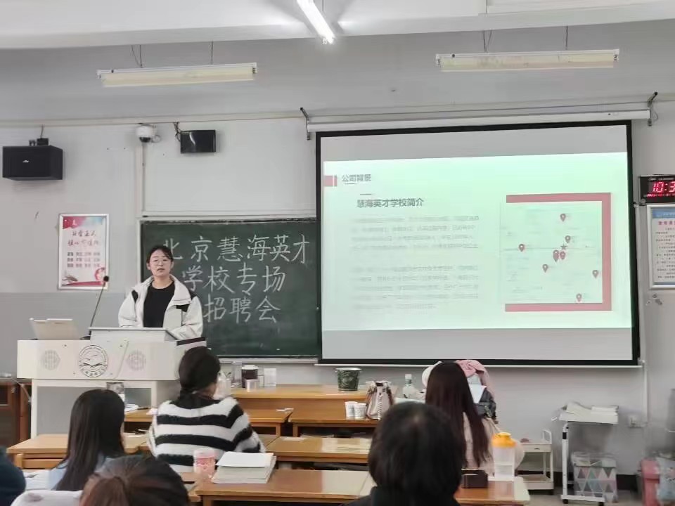 宣讲老师向毕业生介绍了北京慧海英才学校的基本情况和薪资待遇。北京慧海英才学校作为一家专注于中国教育培育领域的培训机构,地理位置优越,覆盖面极广,不仅拥有着顺义区最大的幼儿园,还有针对小学,初中及高中不同年级同学的培训教育活动,除此之外还有主营包包、服饰、化妆品等的电商平台。北京慧海英才学校采用等级薪资,坚持多劳多得、少劳少得。在初期还会对员工进行培训,同时为员工提供住宿,解决员工的住宿问题。本次招聘会吸引了众多同学,同学们在招聘会上积极提问,纷纷投出了简历并进行了精彩的笔试和面试。