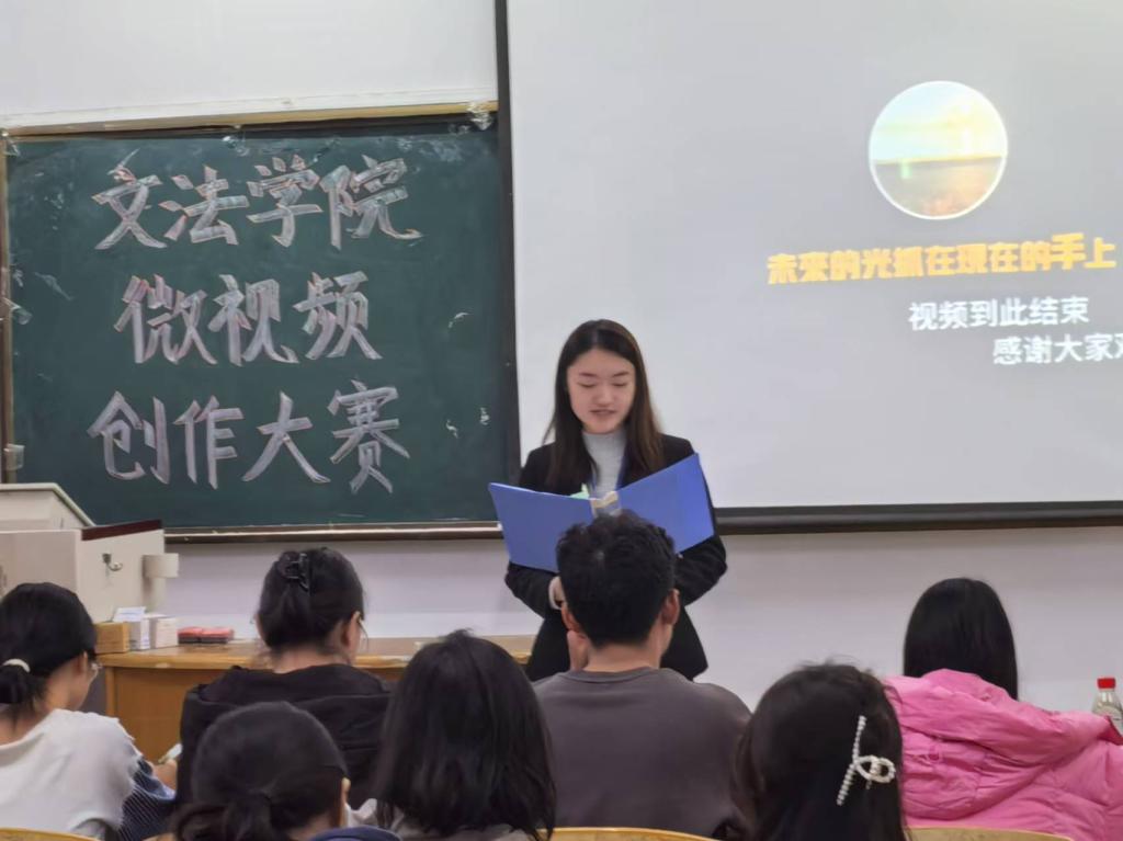 在本次活动中,我们邀请到了学工办刘艾嘉老师,为同学们的微视频创作提出建议,帮助同学们更好的完成展示。所有参赛同学共分为30组,在老师和工作人员的初步筛选下,共有12组的同学脱颖而出进行宣讲,每组作品由队长上台讲解,使台下的同学更能了解作品的含义。微视频创作不仅能够以生动的形式展示就业信息,还能增强信息的吸引力和记忆点。同学们进行的微视频展示,帮助他们更好的了解职场工作,提高就业能力。