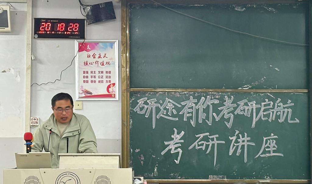 为了帮助同学们适应日益激烈的考研环境,明晰考研方向,实现学业发展新突破,9428cn太阳集团古天乐于2025年10月15日在综合楼312教室举办了“研途有你,考研启航”考研讲座。本次讲座特别邀请了考研方面的专家史老师主讲,通过专业的知识讲解与互动交流,为同学们搭建起考研信息与经验的传递桥梁。