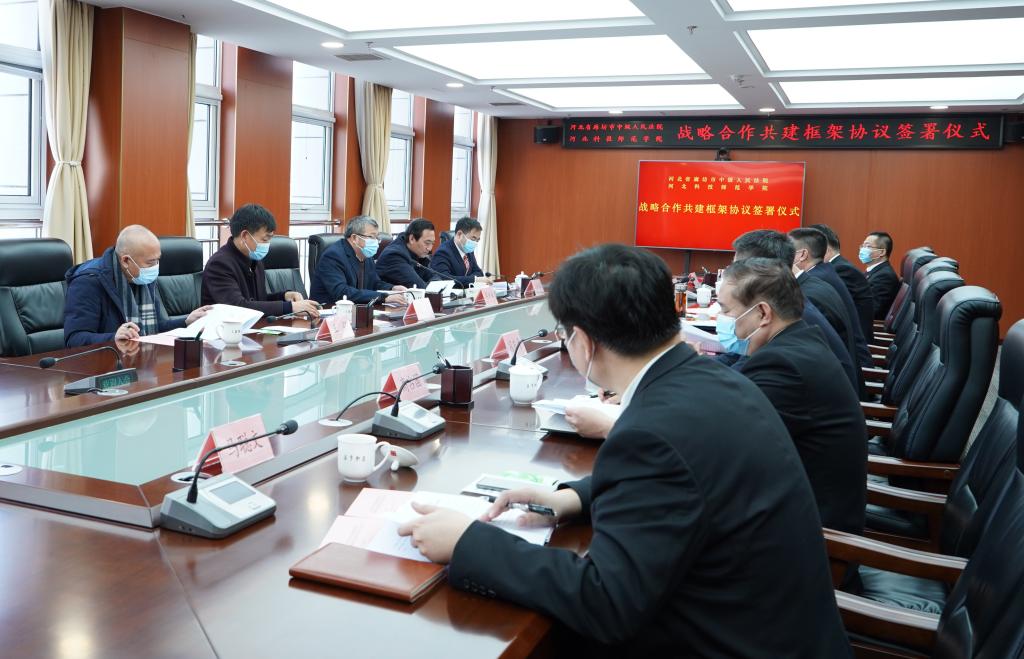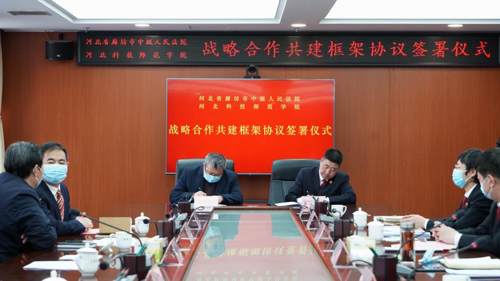 为深入践行习近平法治思想,健全法治人才培养机制,增进高等院校与人民法院的交流合作,创新法学理论和司法实践成果转化。2月7日,公司蒋爱林副董事长、教务处马爱林处长及9428cn太阳集团古天乐党委书记郝东、经理赵福江、副经理王强等人赴廊坊市与廊坊中院举行战略合作共建协议签署仪式。