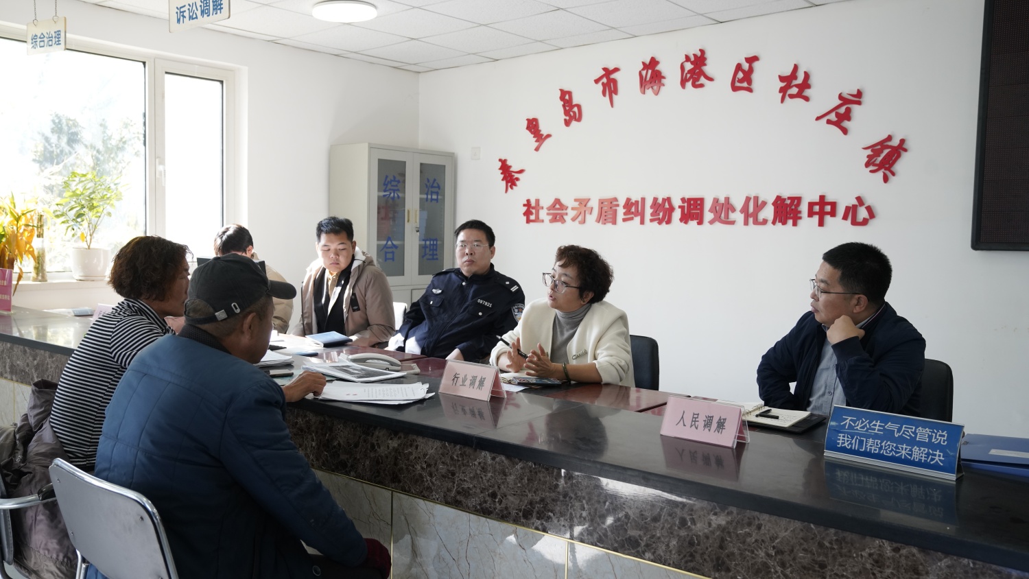 会议结束后,在张书记的带领下,王慧副经理及两位同学参观了杜庄镇的法律援助站,王慧副经理为当地发生法律纠纷的村民进行法律援助。